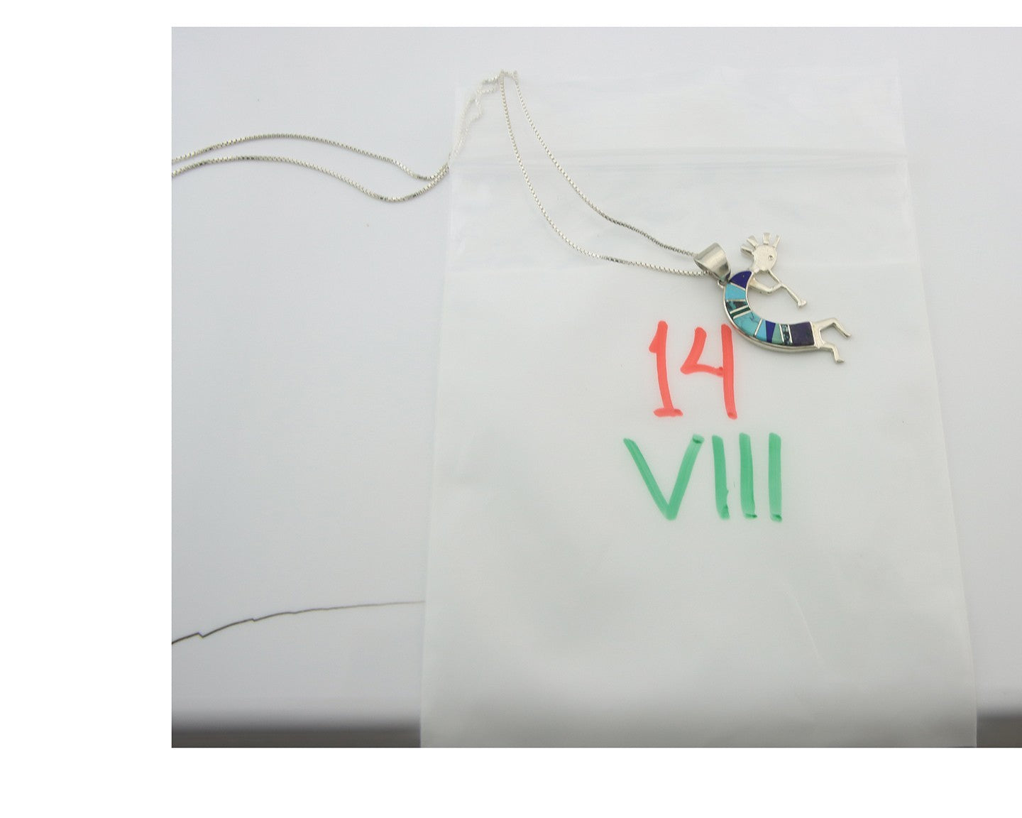 Navajo Kokopelli Necklace Sterling Silver Natural Gemstone Vintage Signed