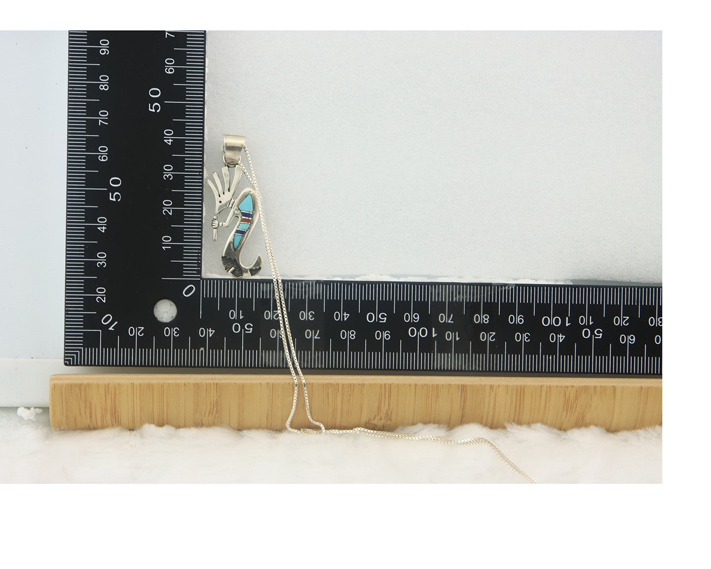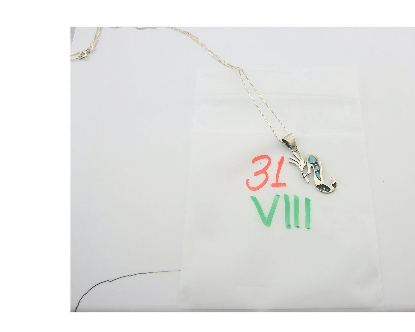 Navajo Kokopelli Necklace Sterling Silver Natural Gemstone Vintage Signed Paw