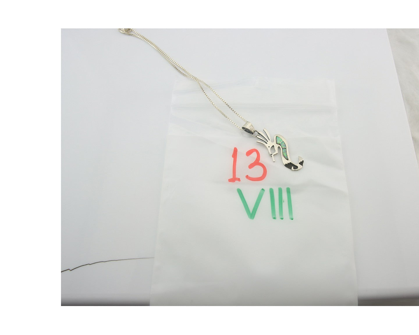 Navajo Kokopelli Necklace Sterling Silver Opal Vintage Signed BB