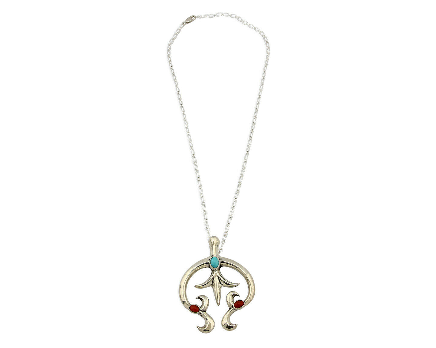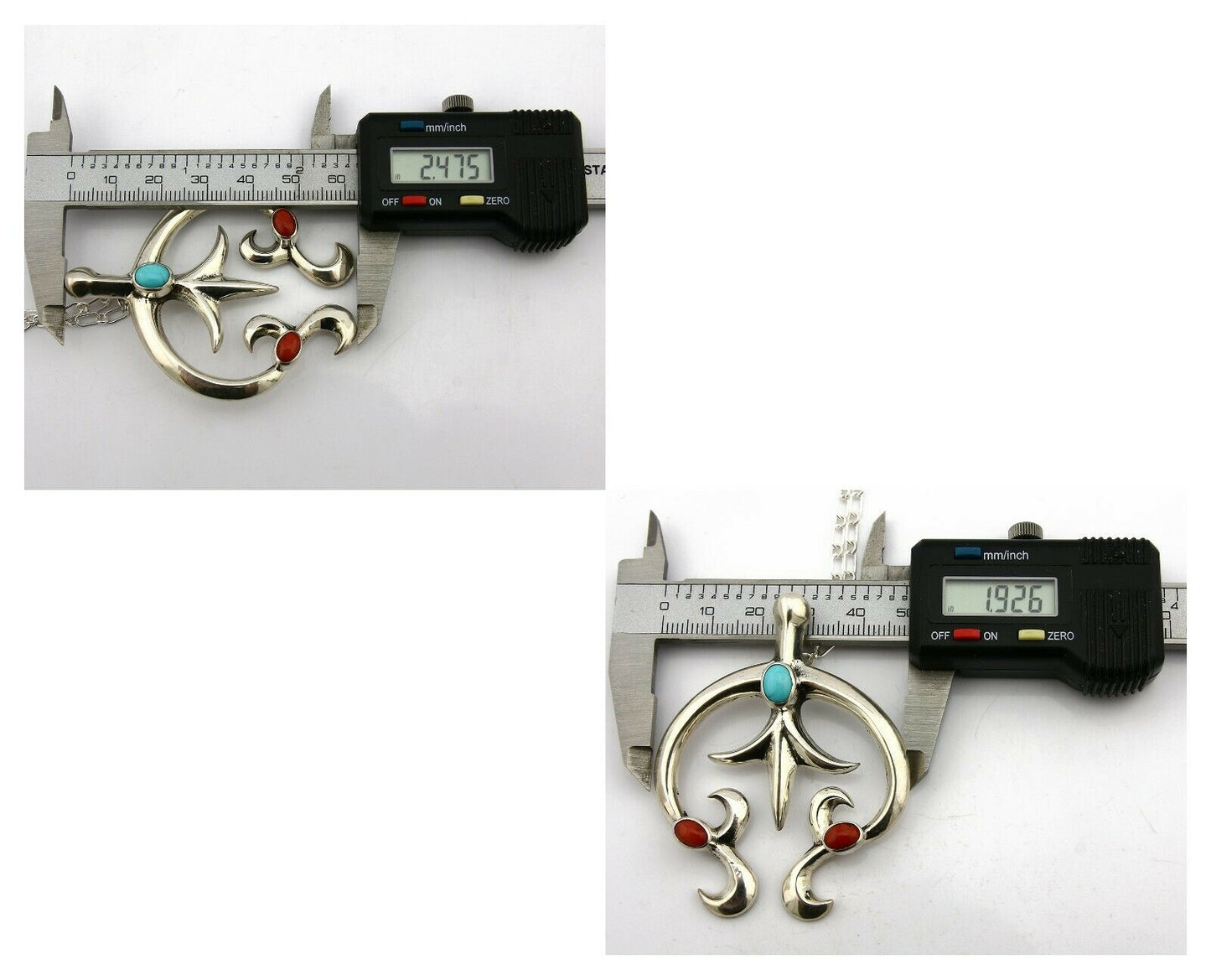 Navajo Necklace .925 Silver Natural Red Coral Turquoise Artist Native C.80's