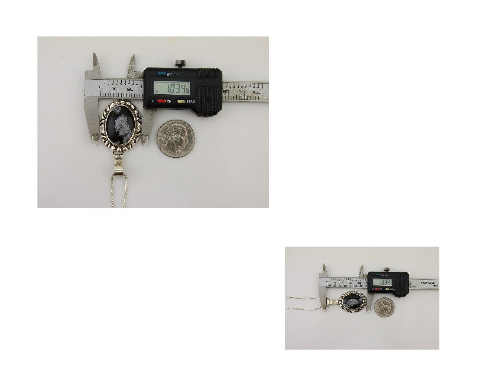Navajo Necklace 925 Silver Onyx Natural Snowflake Agate Signed Native American