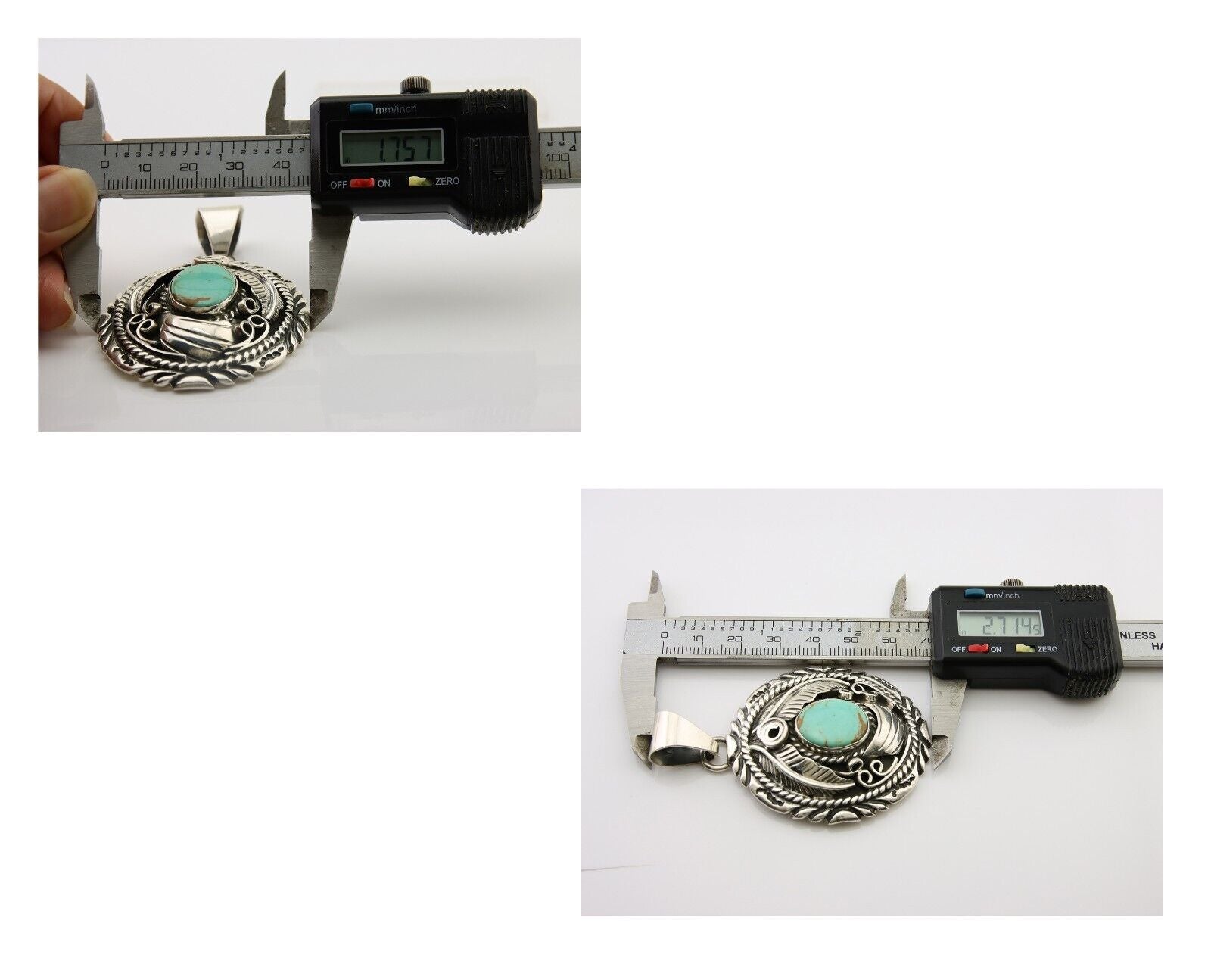 Navajo Pendant 925 Silver Natural Blue Turquoise Native American Artist C.80's