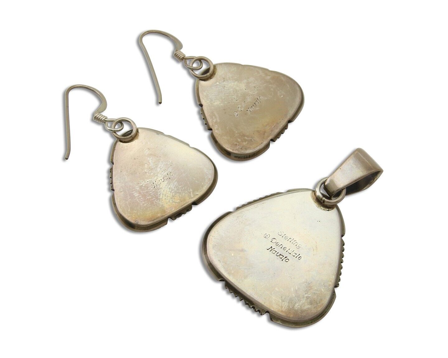 Navajo Pendant Earring Set 925 Silver Malachite Signed William Denetdale C80s