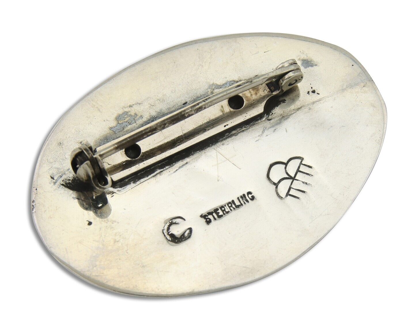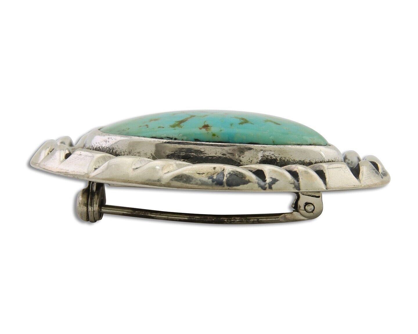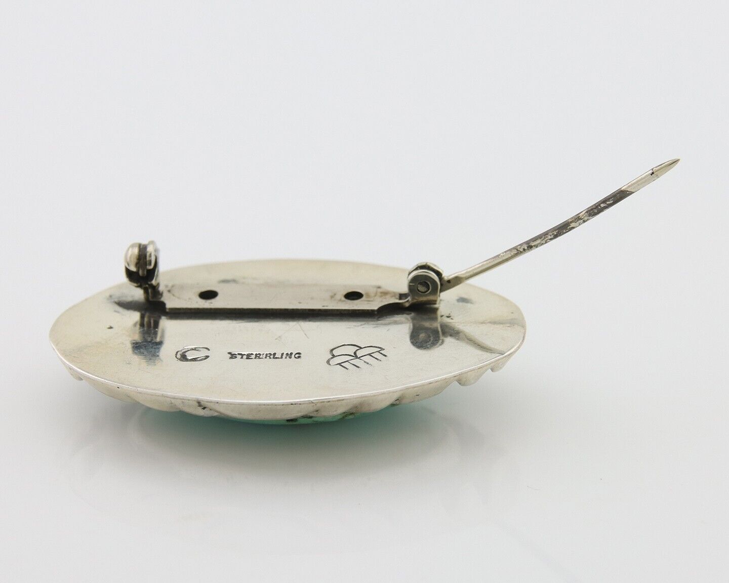 Navajo Pin 925 Silver Natural Mined Turquoise Artist Signed C Montoya C.80's