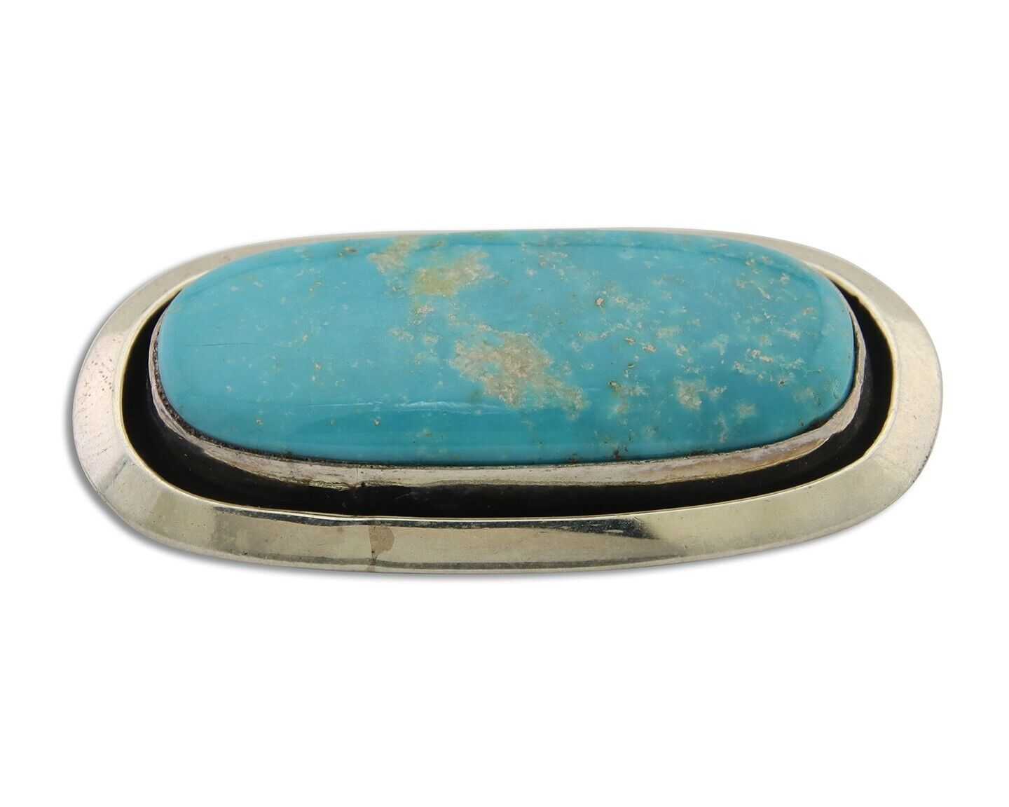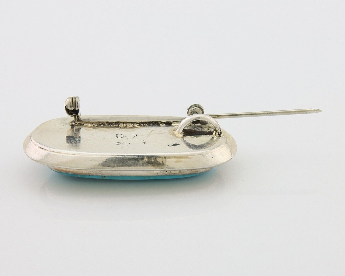 Navajo Pin Pendant 925 Silver Globe Turquoise Artist Signed Doug Zachary C.80's
