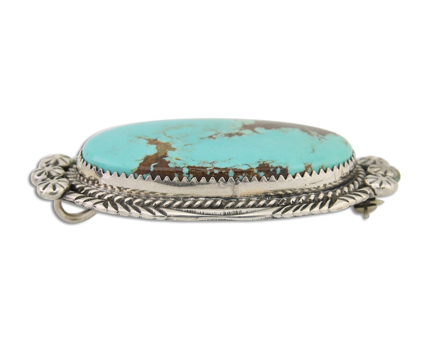 Navajo Pin Pendant 925 Silver Natural Blue Turquoise Artist signed SC C.80's