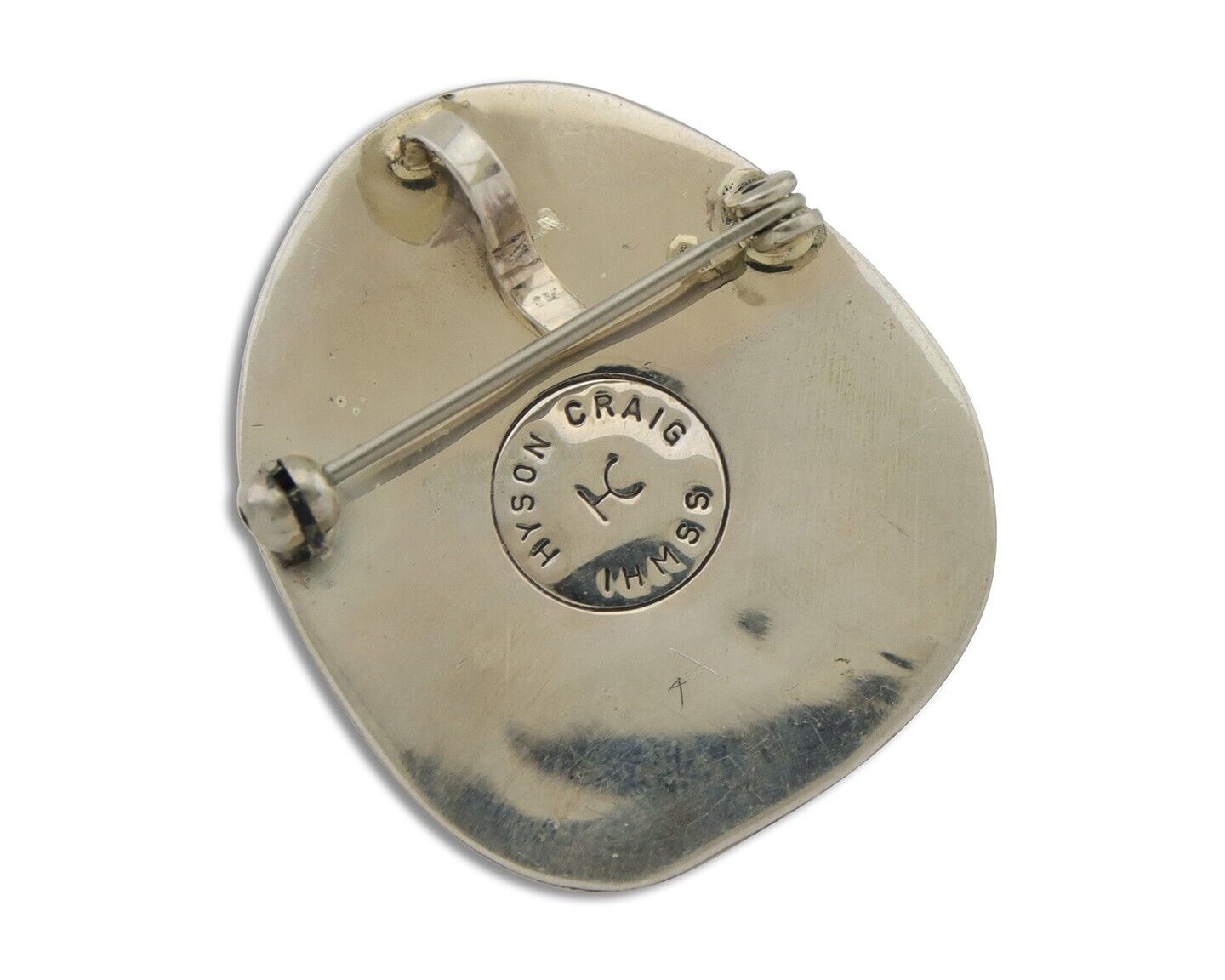 Navajo Pin Pendant 925 Silver Sea Foam Turquoise Artist Signed Hyson Craig C.80s
