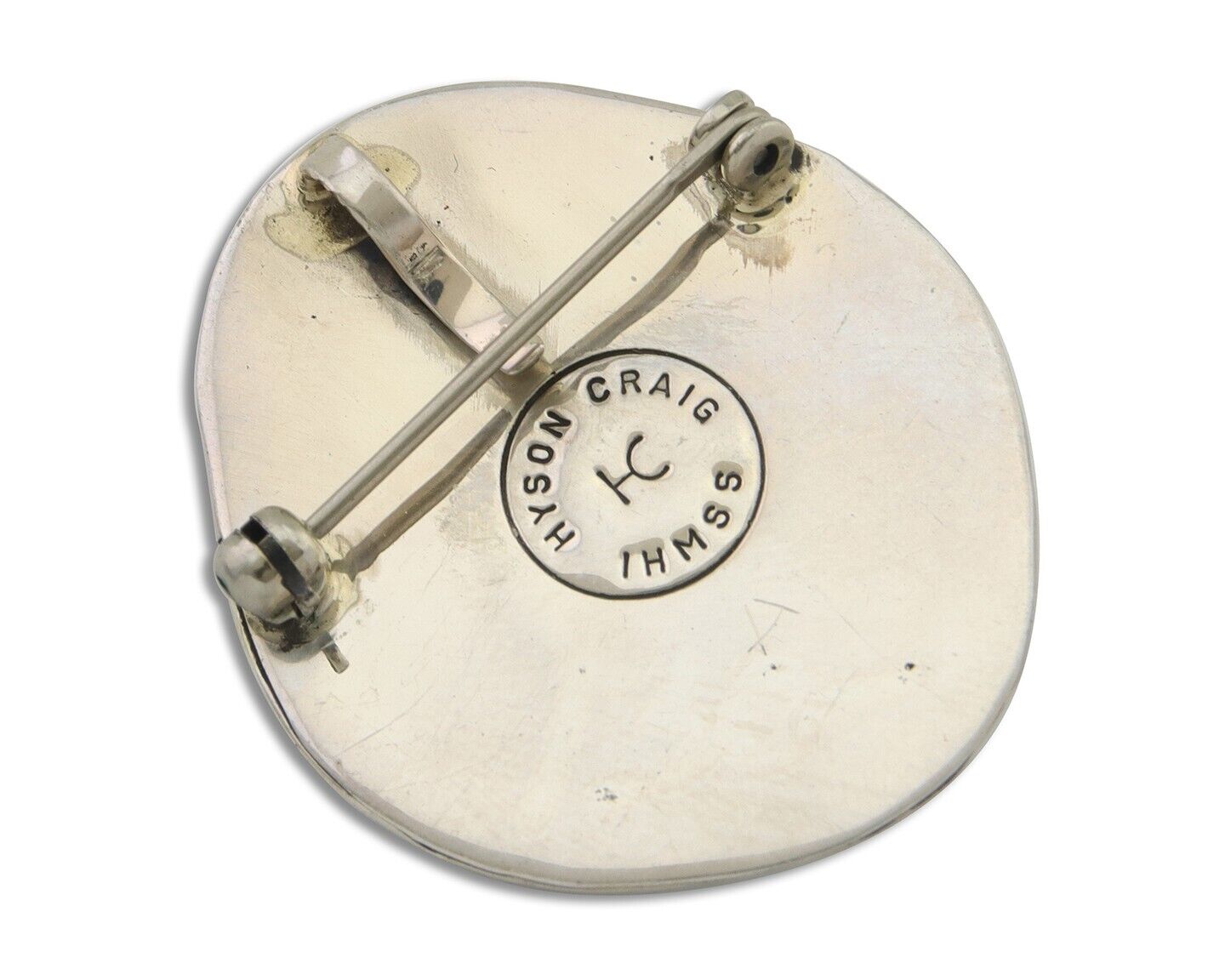 Navajo Pin Pendant 925 Silver Sea Foam Turquoise Artist Signed Hyson Craig C.80s