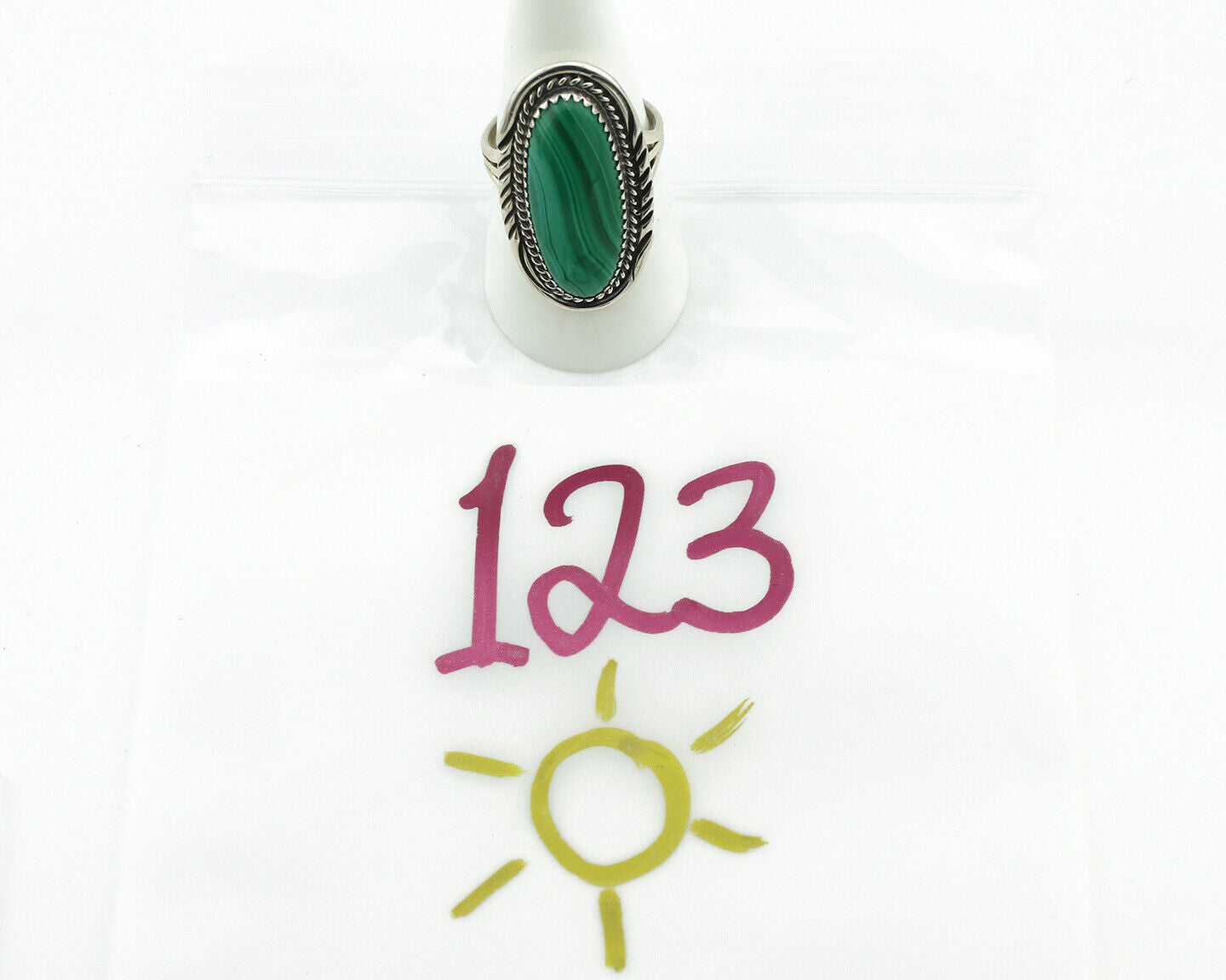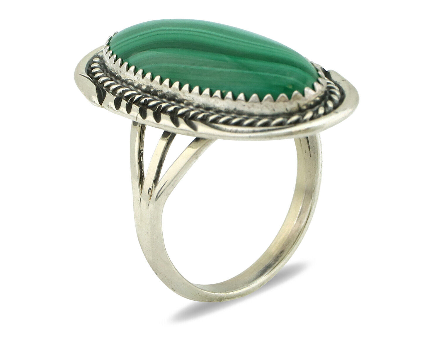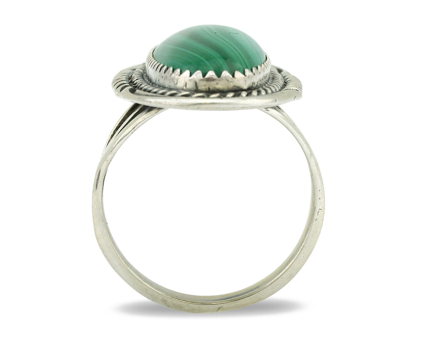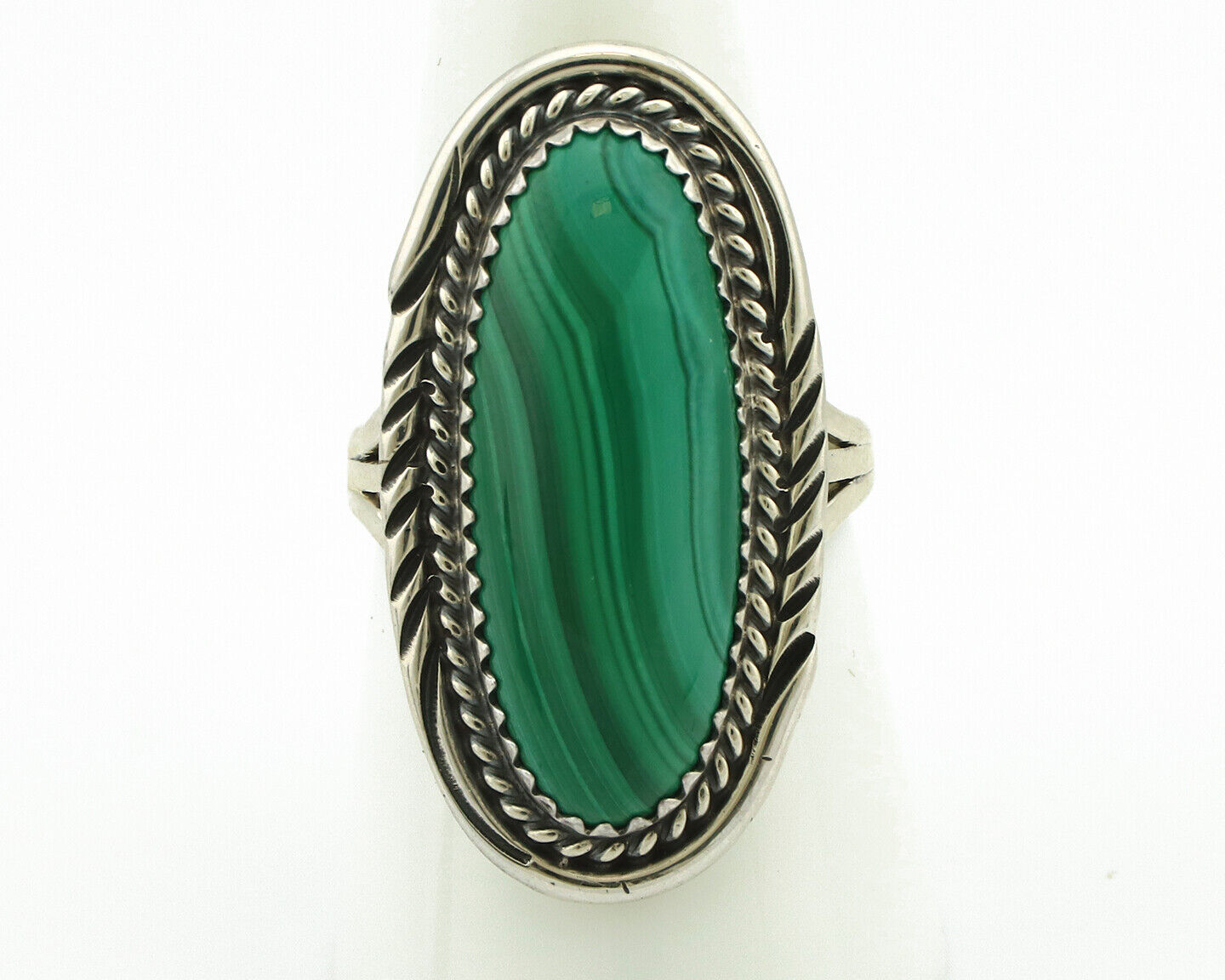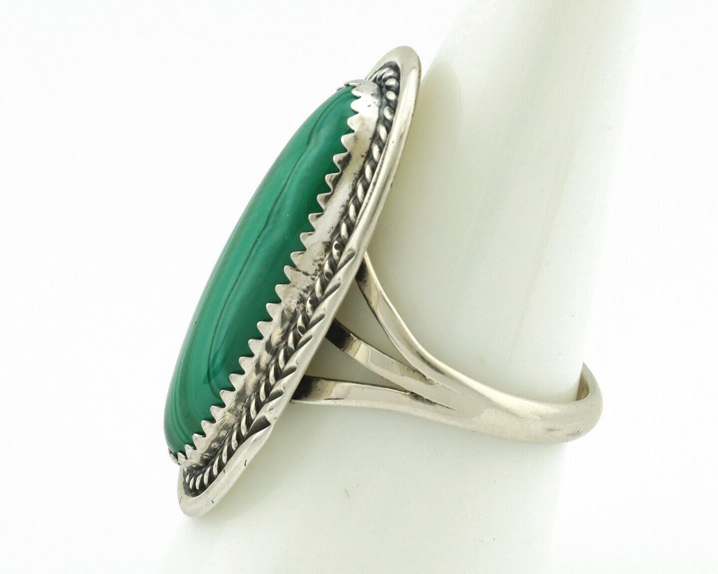 Navajo Ring 925 Silver Natural Green Malachite Signed William Denetdale C.80's