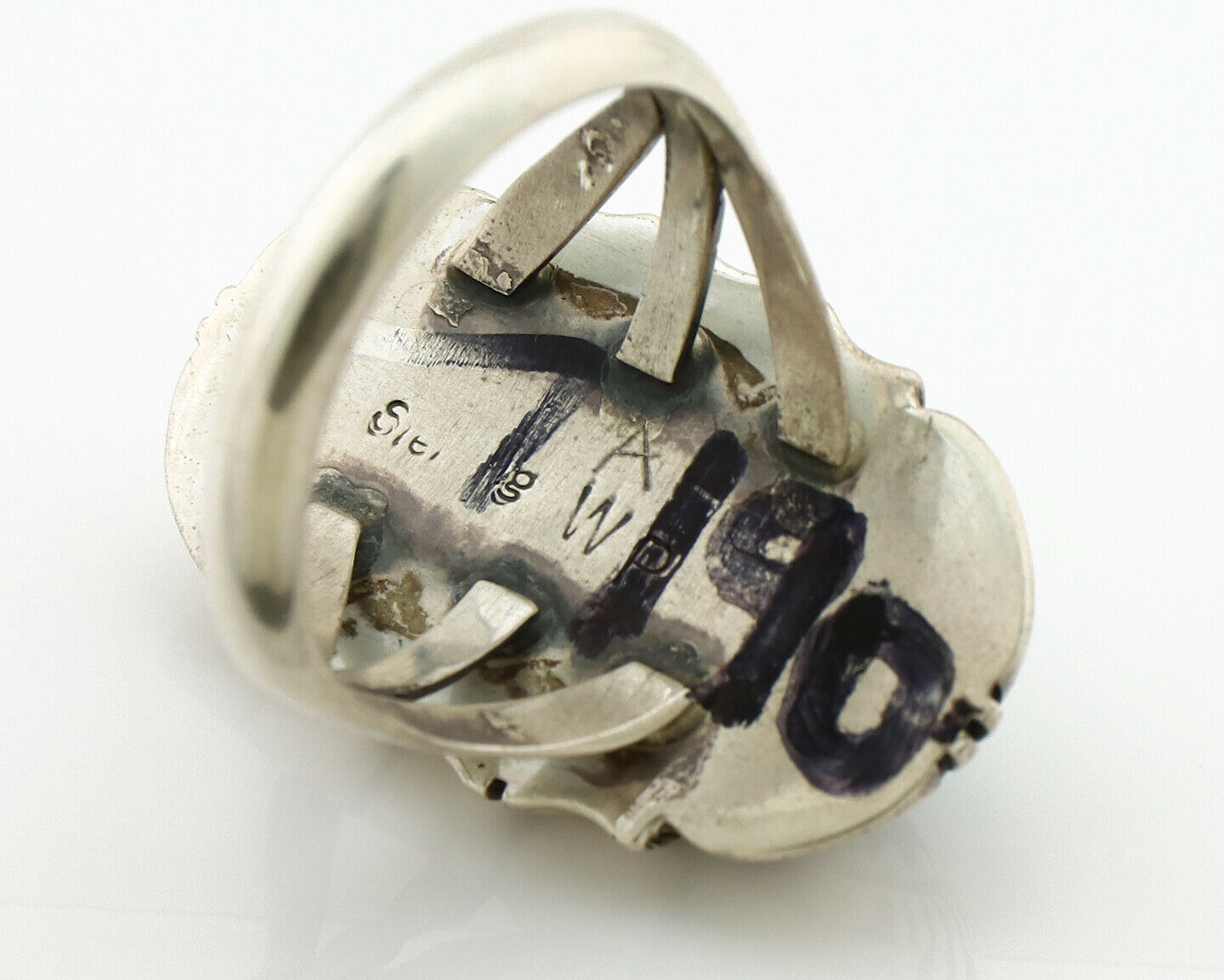 Navajo Ring .925 Silver Spiderweb Turquoise Signed WP C.80's