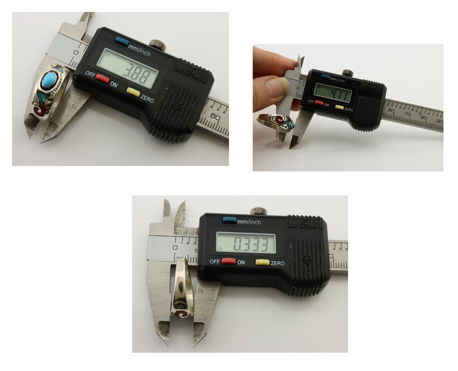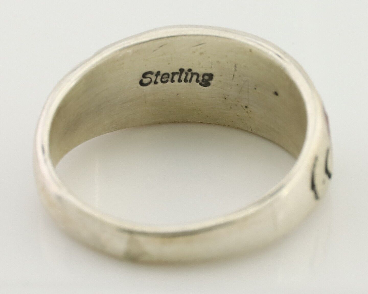 Navajo Ring 925 Silver Turquoise & Coral Natural American Artist C.80's