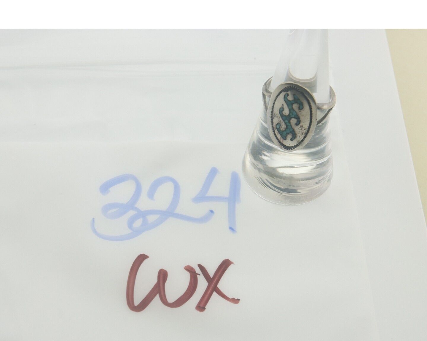 Navajo Ring 925 Sterling Natural Chip Inlay Blue Turquoise C.80's Size 7.0