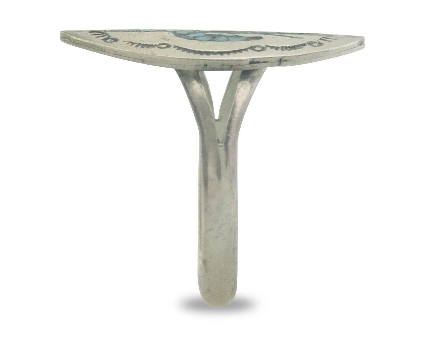 Navajo Ring 925 Sterling Natural Chip Inlay Blue Turquoise C.80's Size 7.75