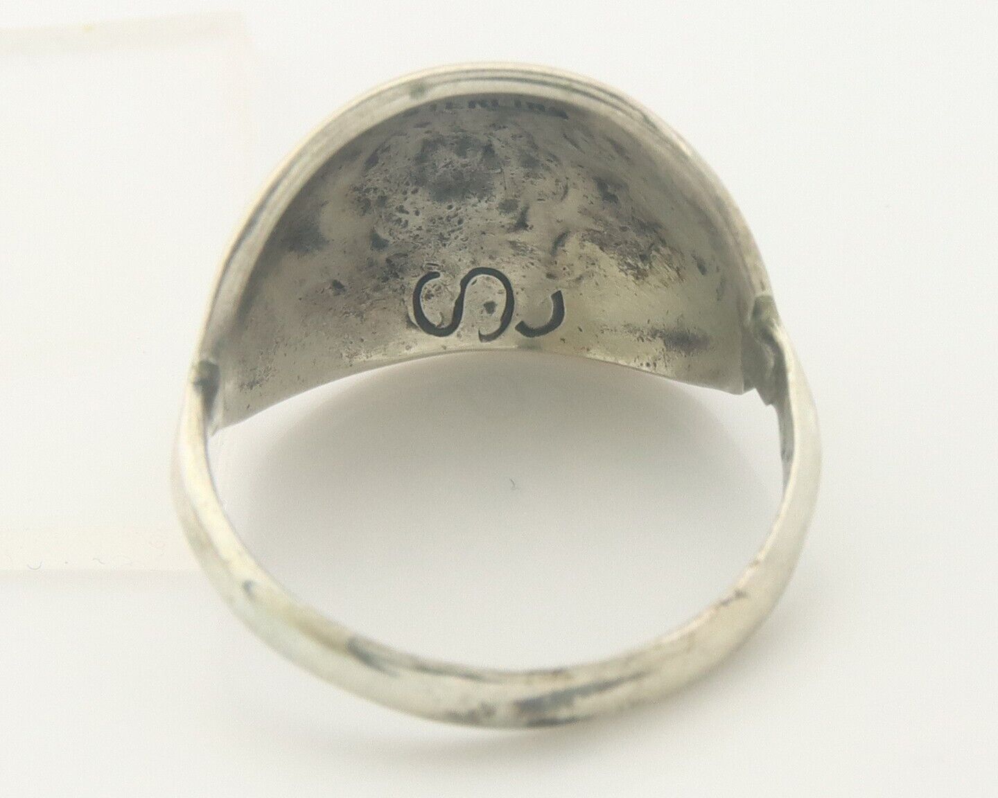Navajo Ring 925 Sterling Natural Chip Inlay Coral & Turquoise C.80's Sz 8.0