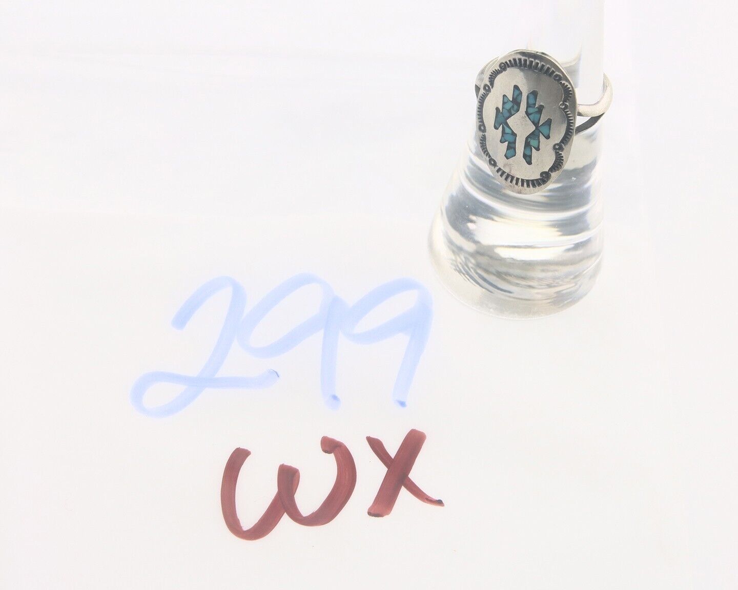 Navajo Ring 925 Sterling Natural Chip Inlay Turquoise C.80's Size 5.75