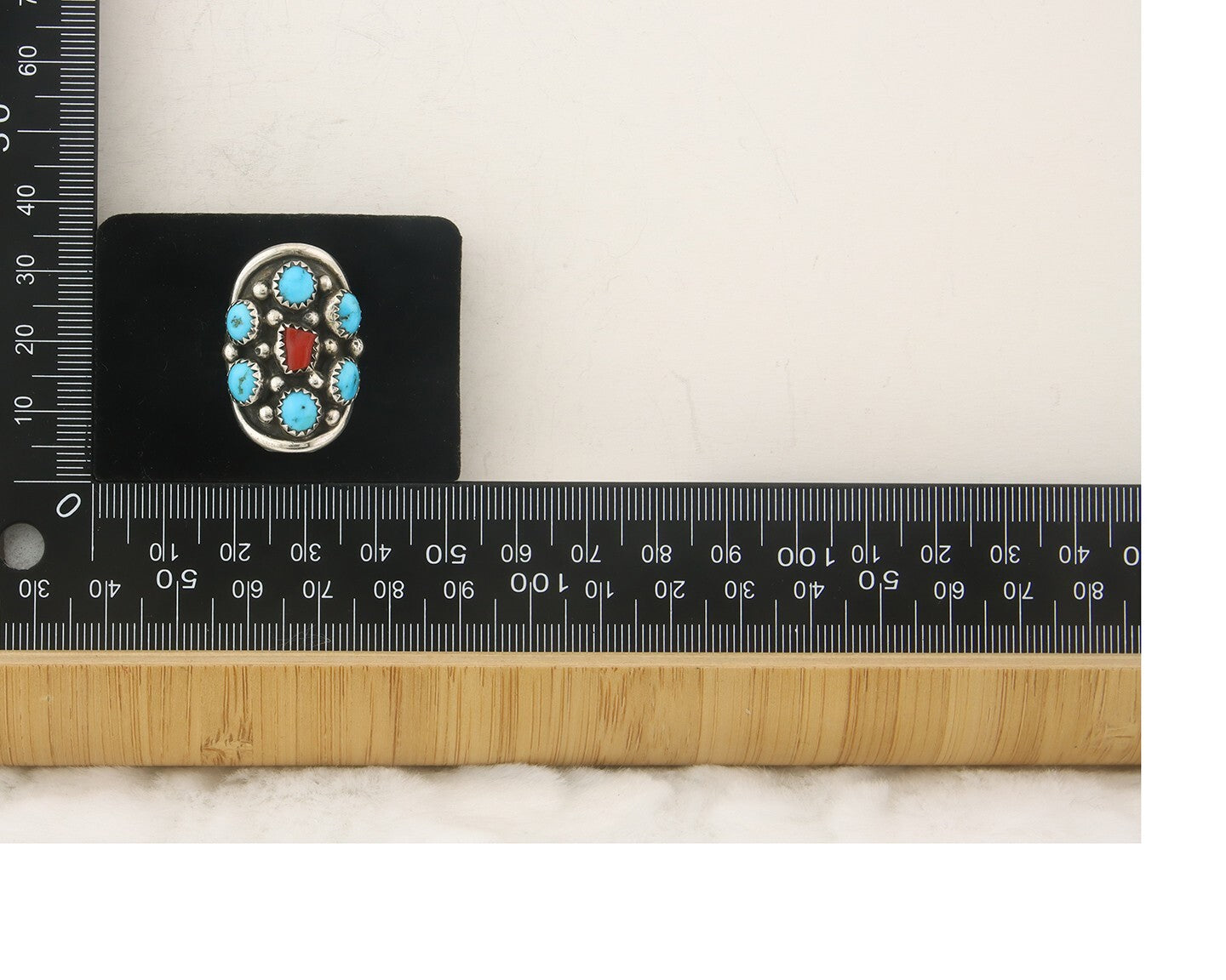 Navajo Ring 925 Sterling Natural Coral & Turquoise Signed EH C.80's Size 6.25