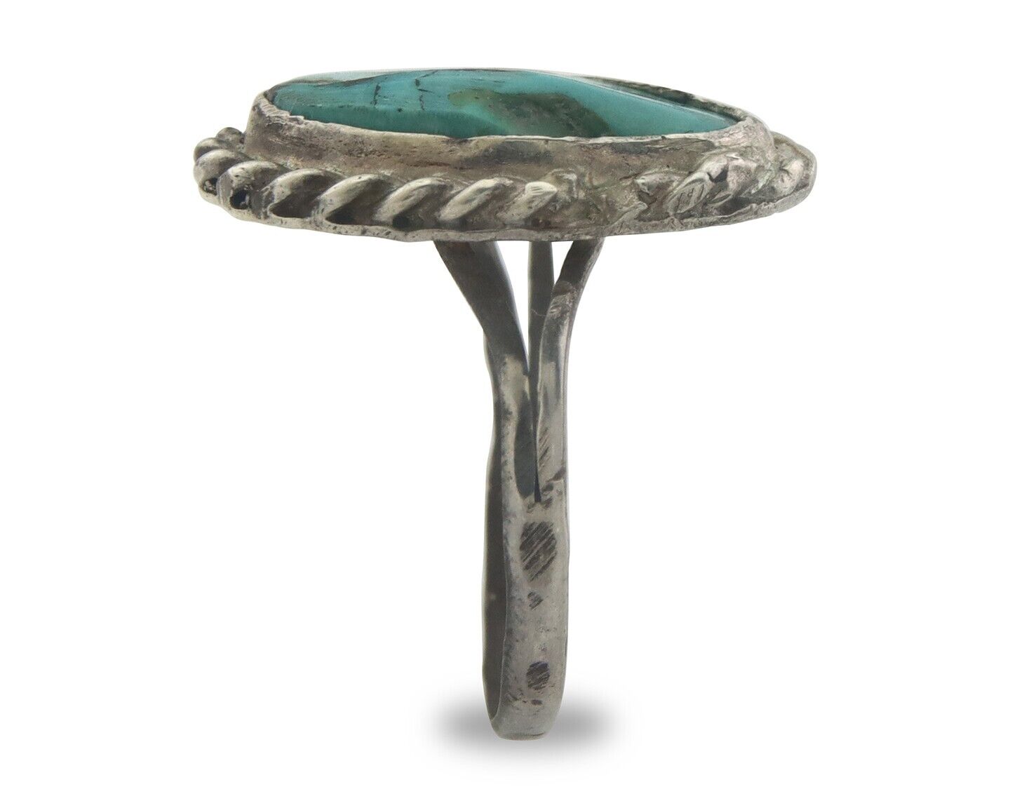 Navajo Ring 925 Sterling Natural Turquoise Native Artist C.80's Size 6.75