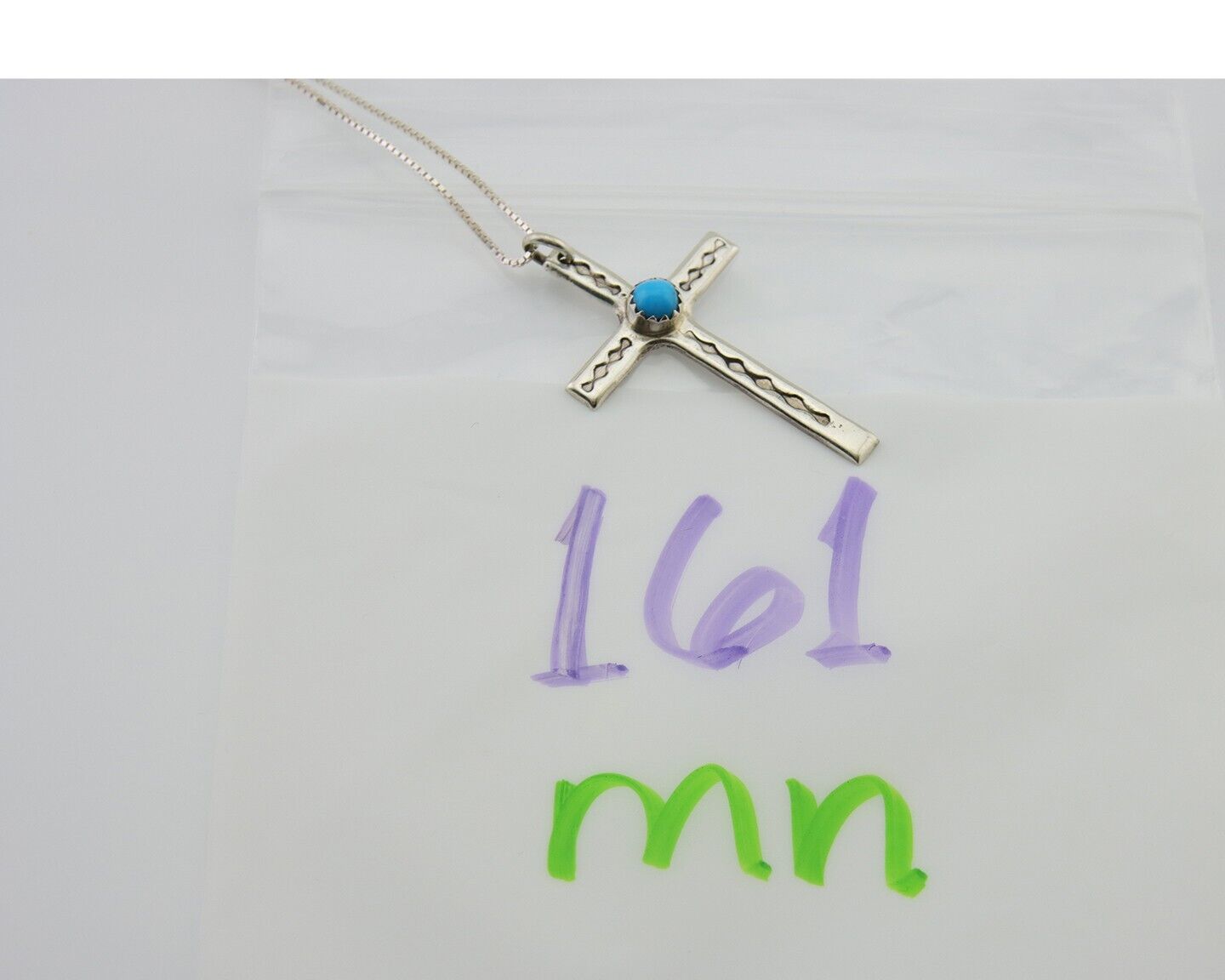 Navajo Sand Cast Necklace 925 Silver Turquoise Native American Artist C.80's