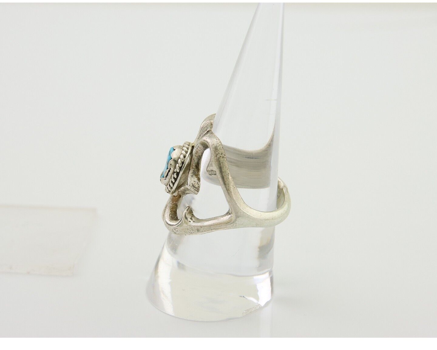 Navajo Sand Cast Ring 925 Silver Sleeping Beauty Turquoise Artist C.80's
