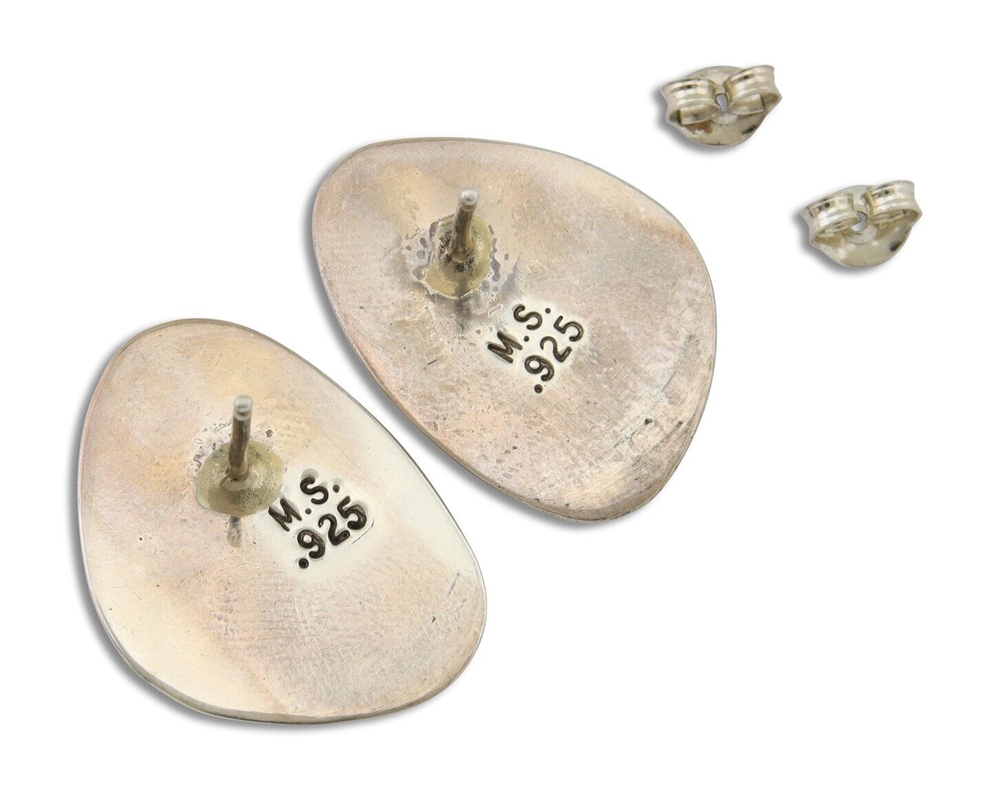 Navajo Shield Earrings 925 Silver Natural Turquoise Artist Signed M.S. C.80's