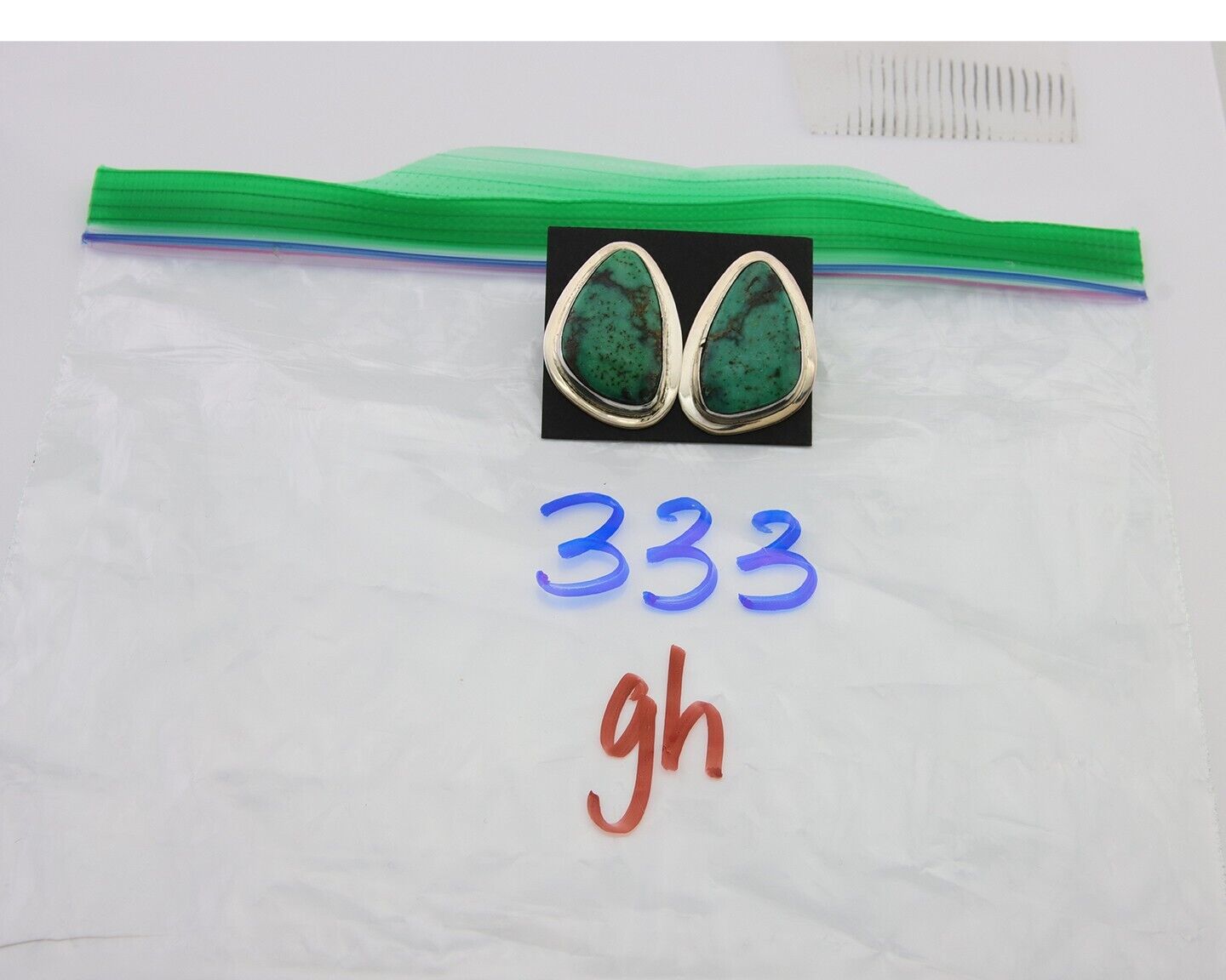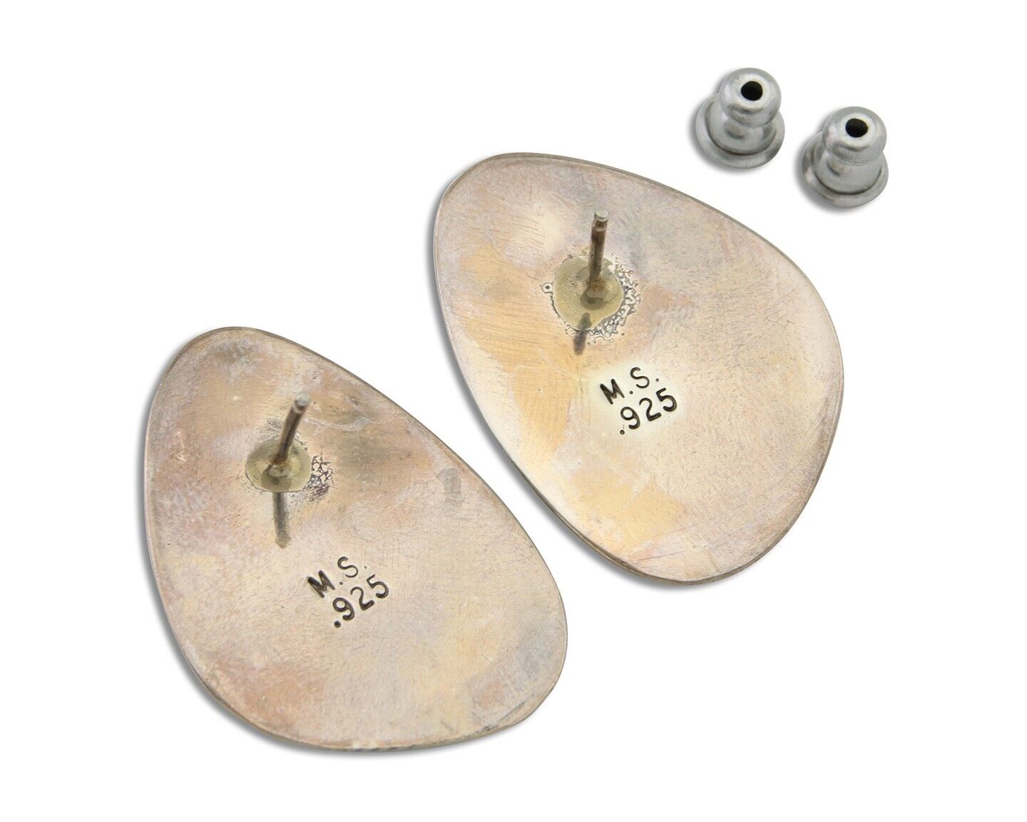 Navajo Shield Earrings 925 Silver Natural Turquoise Artist Signed M.S. C.80's