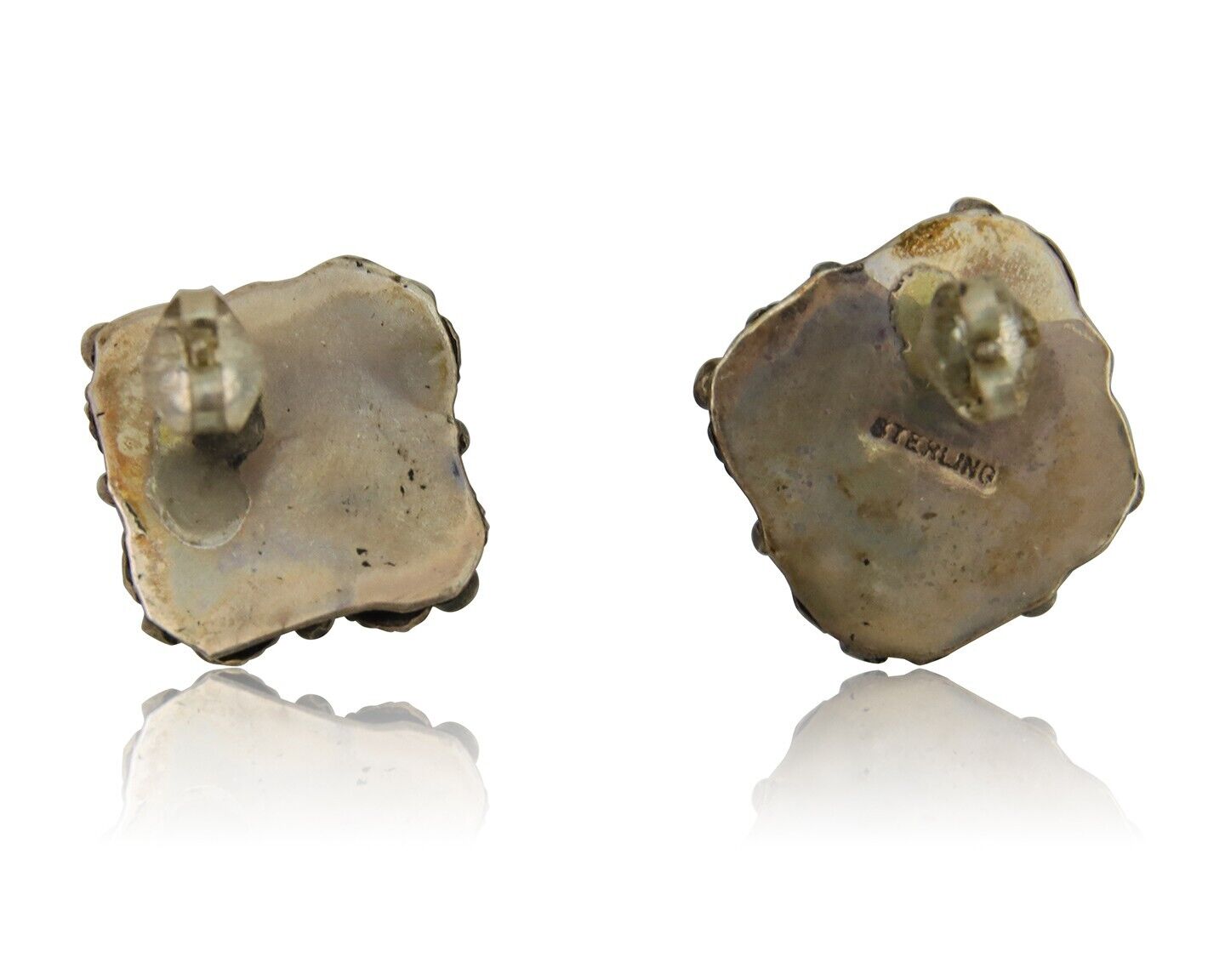 Navajo Shield Natural Turquoise Earrings 925 Silver Native American Artist C.80s