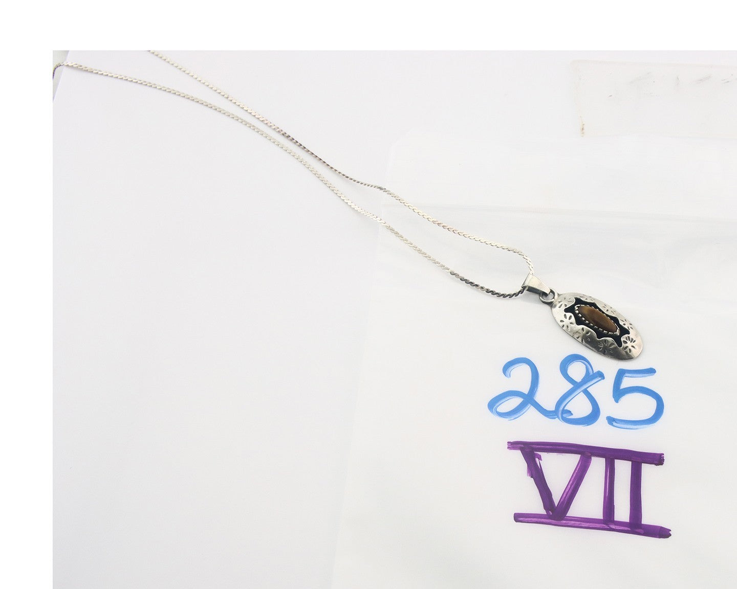Navajo Sterling Silver Necklace Authentic Tiger Eye Sapphire Vintage Handmade