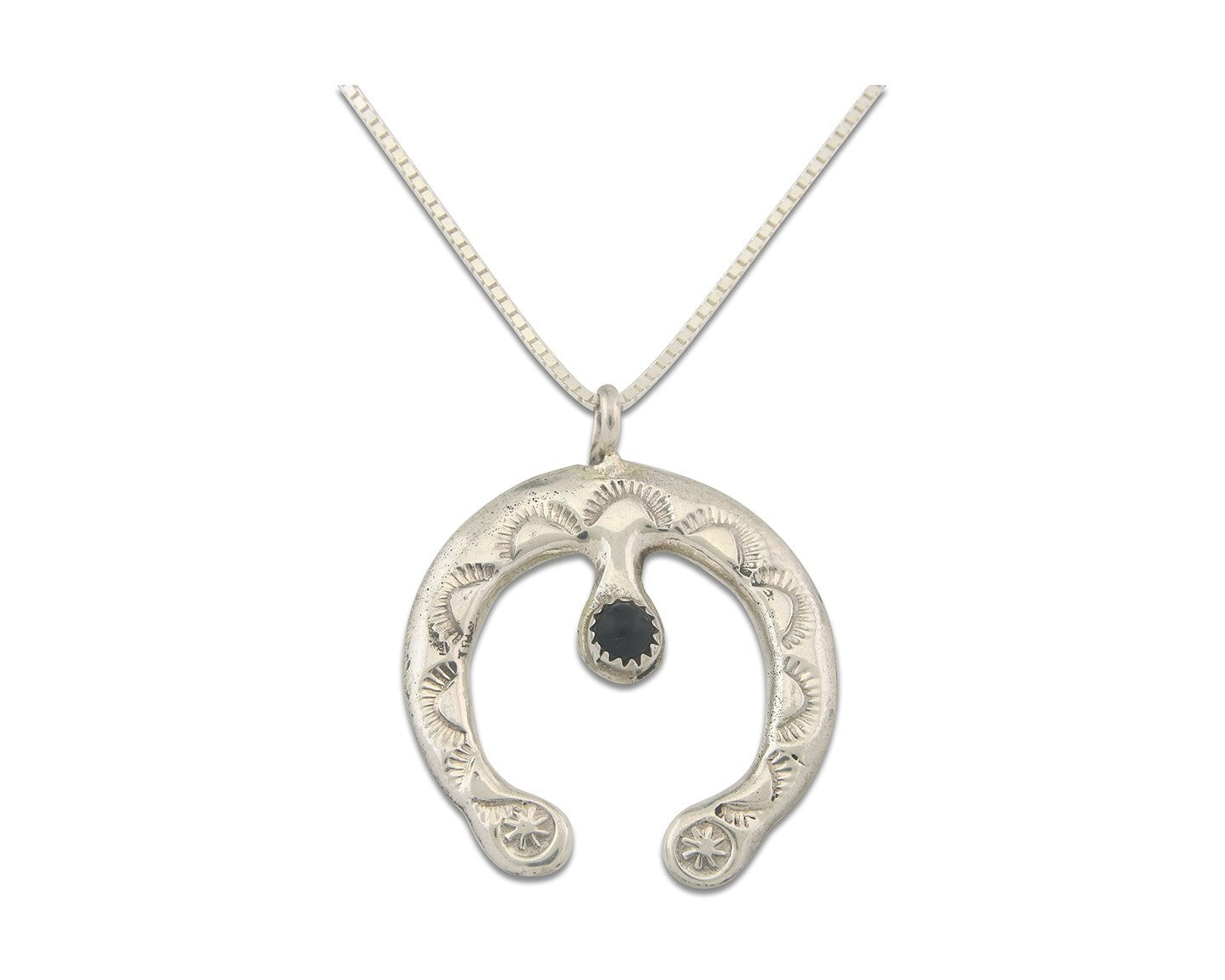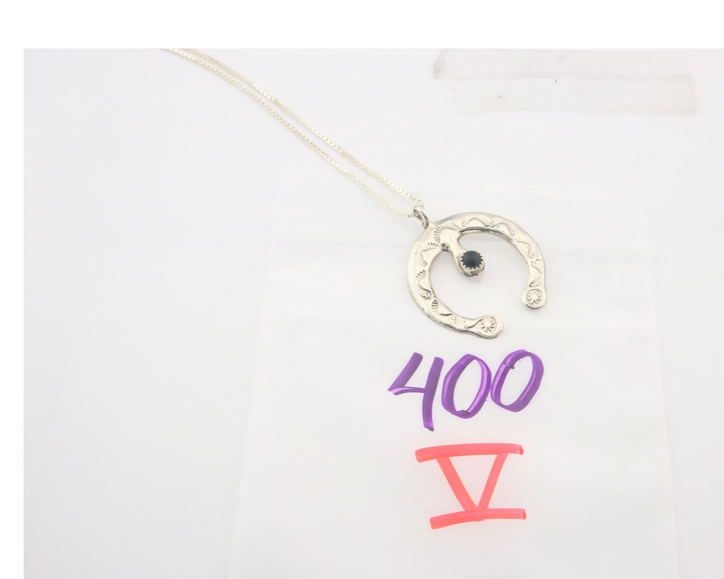 Navajo Sterling Silver Necklace Onyx Sand Cast Authentic Vintage Native American