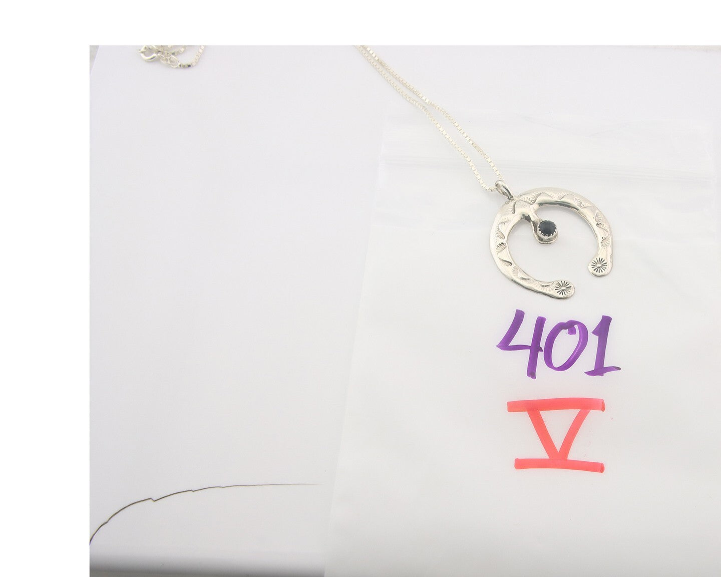 Navajo Sterling Silver Necklace Onyx Sand Cast Authentic Vintage Native American