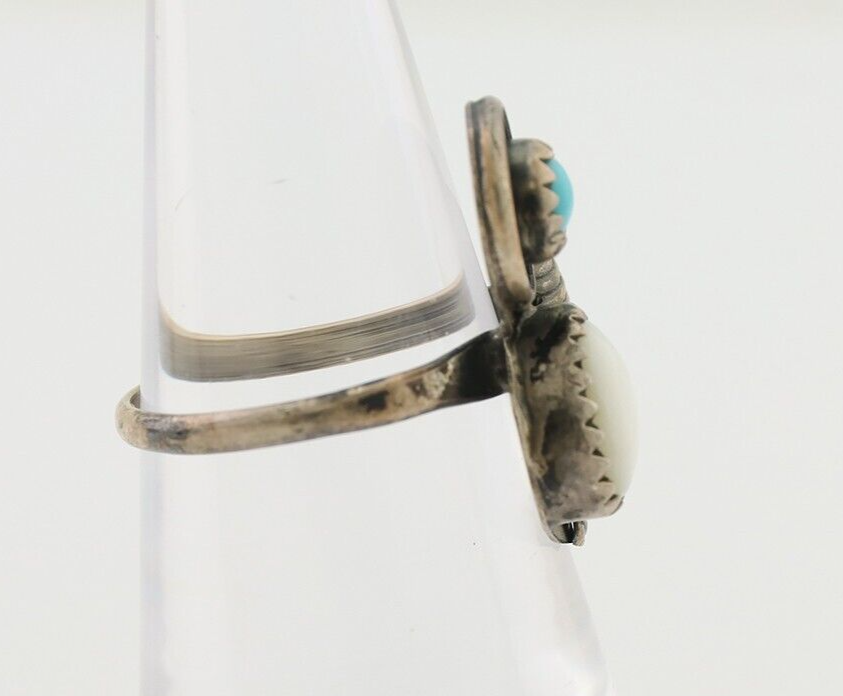 Vintage Handmade Navajo Ring Turquoise & MOP 925 Silver Size 5.75 C.80's