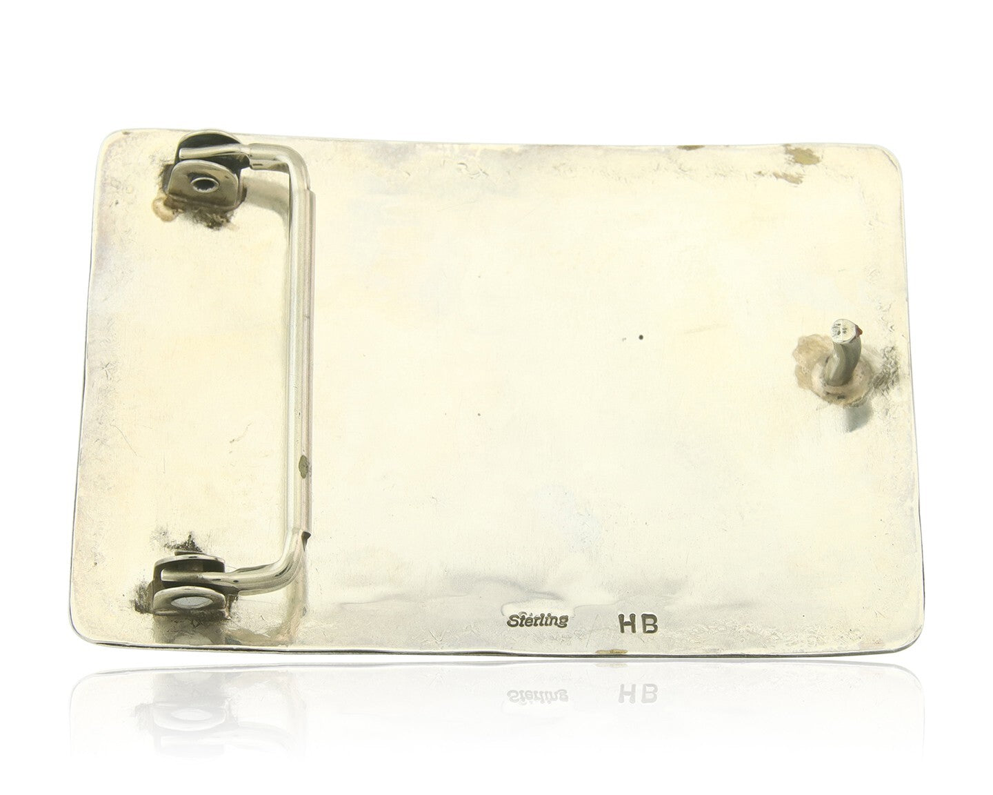 Vintage Navajo Belt Buckle 925 Silver Handmade Inlaid Gemstone Signed HB