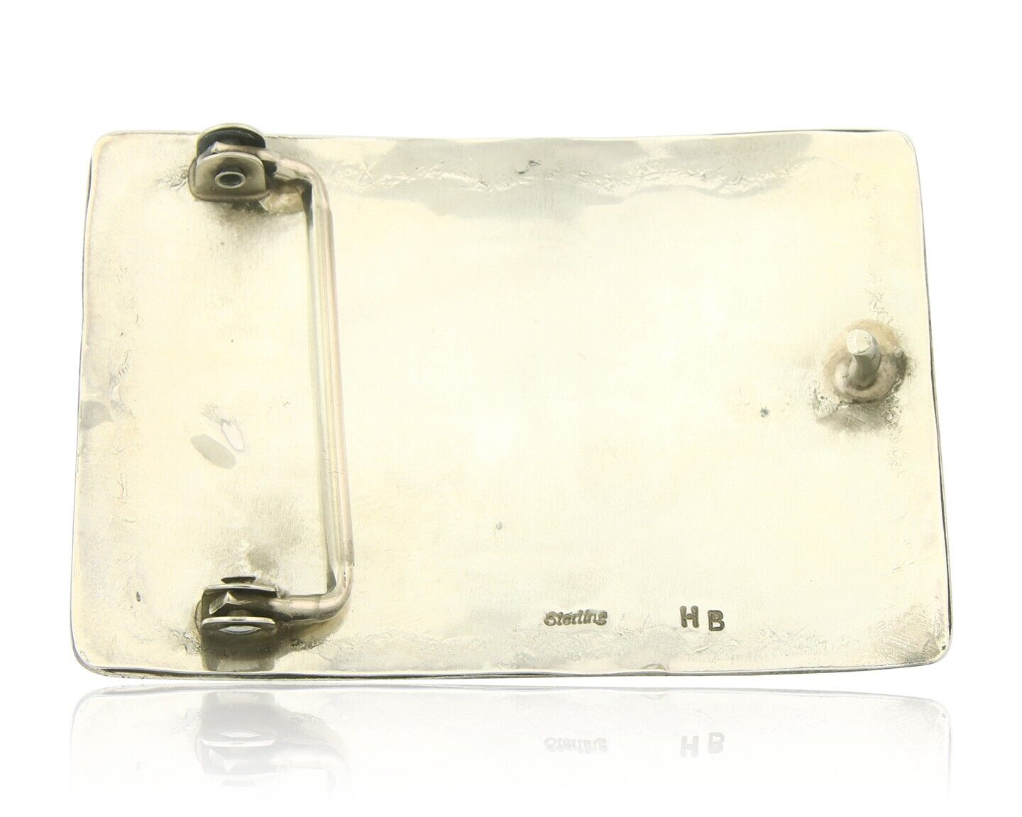 Vintage Navajo Belt Buckle 925 Silver Handmade Inlaid Gemstone Signed HB
