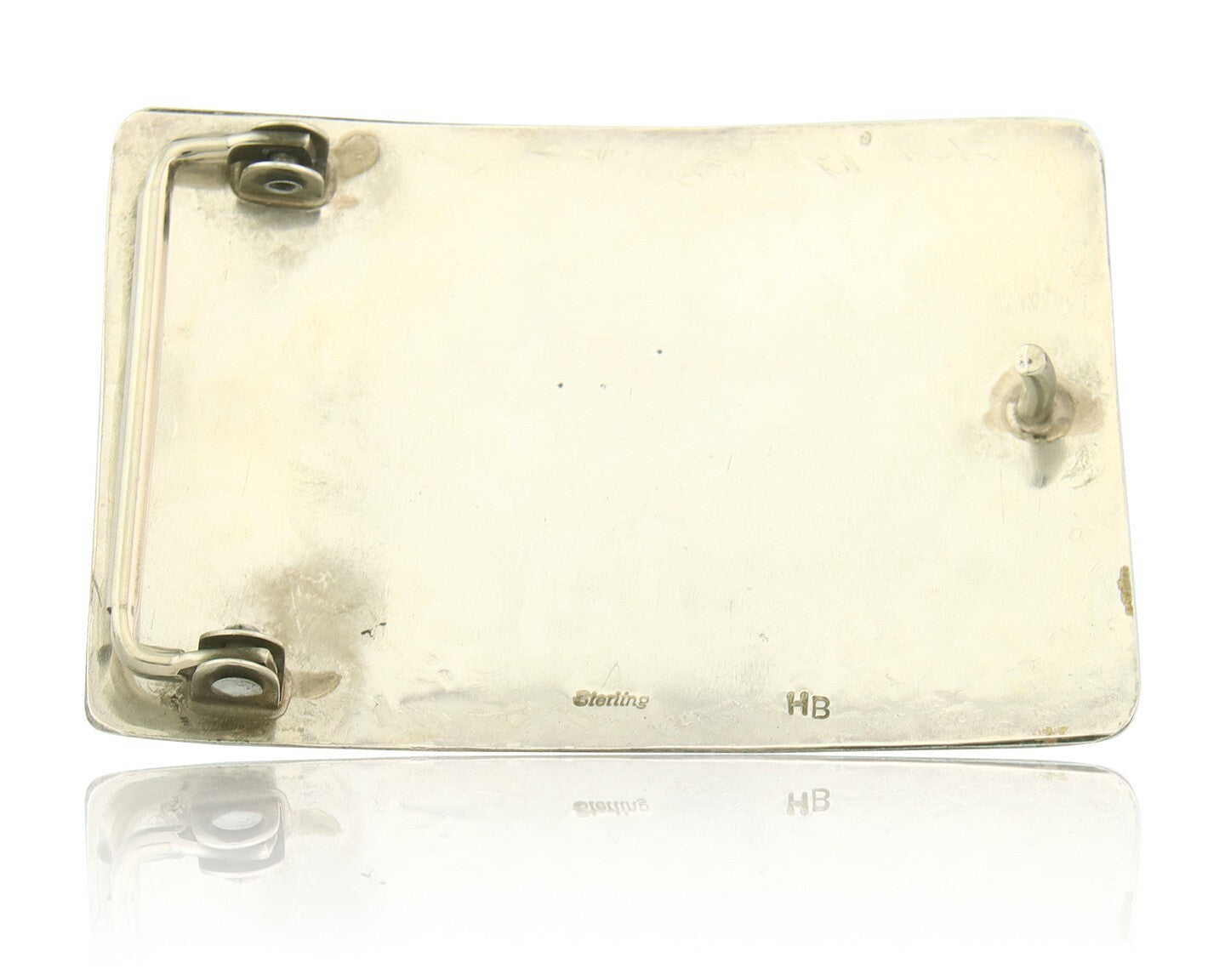 Vintage Navajo Belt Buckle 925 Silver Handmade Inlaid Gemstone Signed HB