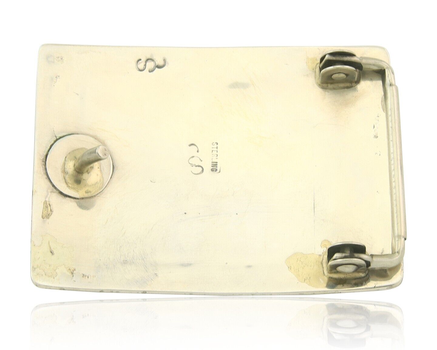 Vintage Navajo Belt Buckle 925 Silver Handmade Inlaid Gemstone Stanely Bain