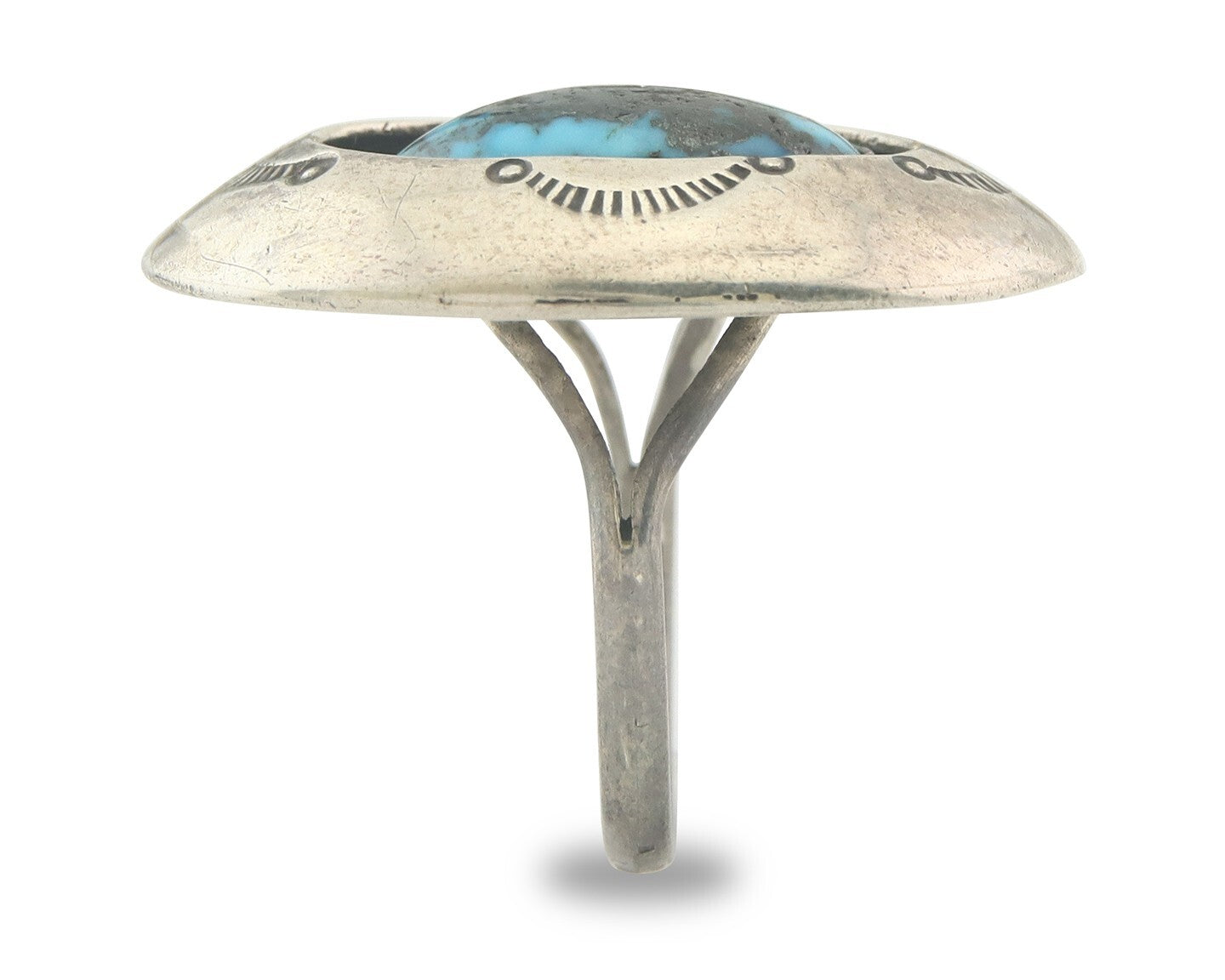 Vintage Navajo Ring 925 Sterling Authentic Traditional Turquoise Size 7.75