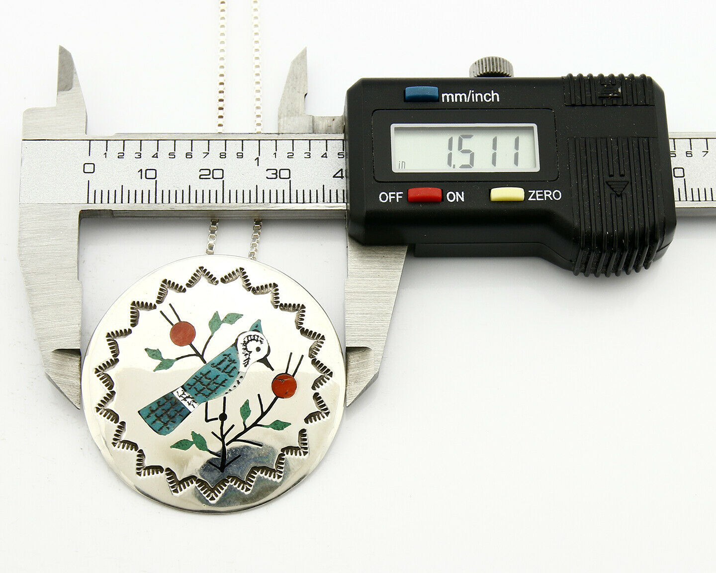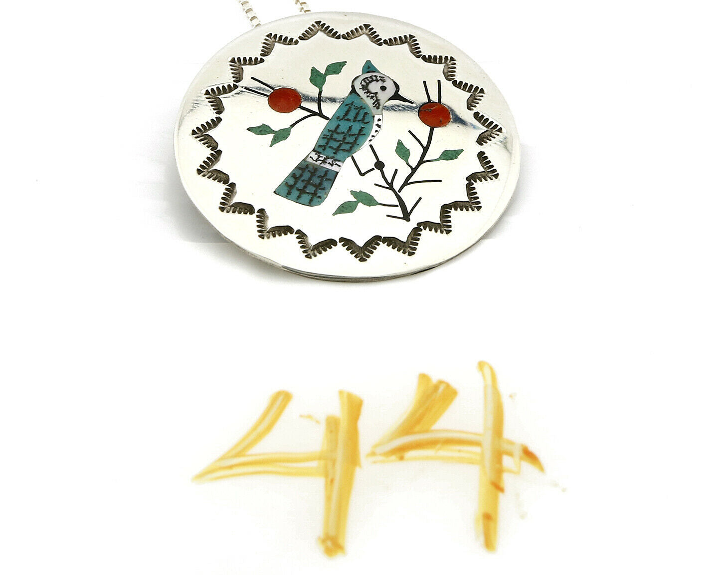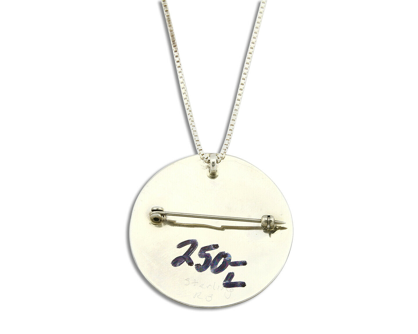 Women's Navajo Pendant Pin Inlaid Gemstone Carved .925 Silver Artist RB