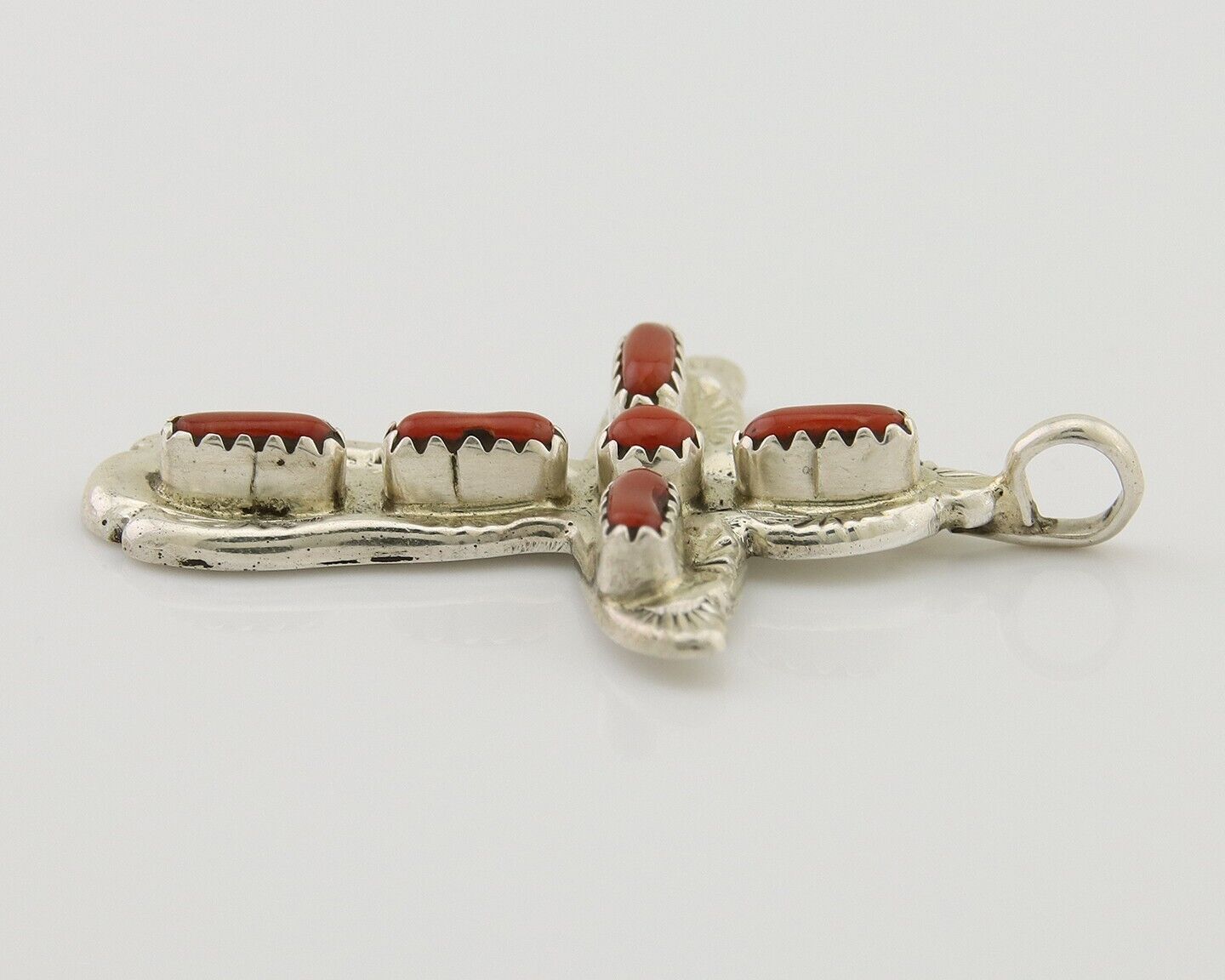 Zuni Cross Pendant 925 Silver Mediterranean Coral Signed W Iule C.80s